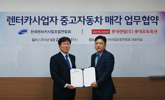 롯데렌탈은 23일 한국렌터카사업조합연합회(이하 KRCA)와 '렌터카사업자 중고자동차 매각에 관한 업무제휴 협약'을 체결했다고 24일 밝혔다.