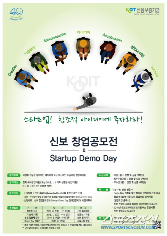 신용보증기금(신보)은 27일 '사업화 가능한 창의적인 아이디어 또는 혁신적인 기술기반 창업아이템'을 주제로 '2016년도 창업 공모전'을 실시한다고 밝혔다.