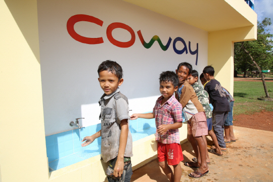 코웨이가 지난 2006년부터 시작한 '캄보디아 우물파기'는 캄보디아 현지의 열악한 수질환경과 식수부족 등의 문제를 개선하기 위해 '10년 동안 1000개의 우물을'이라는 슬로건을 내걸고 진행한 사회공헌 활동이다. 코웨이가 10년 동안 설치한 1000개의 우물 덕분에 캄보디아 14개 주의 주민 5만여 명이 수혜를 받았다.
