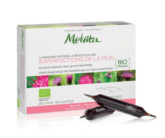 프랑스 유기농 스킨케어 브랜드 멜비타의 스킨임퍼펙션앰플은 트러블 완화에 도움을 주는 기능성 이너뷰티 식용 제품이다. 동양과 서양의 7가지 식물 성분 추출물을 블렌딩한 블랙커런트와 민트 향의 앰플로 상큼하고 신선한 맛이 특징이며 깨끗하고 건강한 피부로 가꾸는데 도움을 준다.