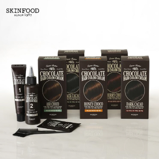 신제품 초콜릿 헤어 컬러 크림(6,500원)은 은은한 초콜릿 향을 가진 헤어 염색제다. 새치 커버용 2종(1호 블랙 카카오, 2호 다크 카카오)과 멋내기용 3종(3호 허니 초코, 4호 체리 초코, 5호 애쉬 초코)의 총 5종으로 구성되어 있다. 초콜릿 무스처럼 부드러운 크림 타입 텍스처로 흘러내림 없이 30분 안에 쉽고 간편하게 생생한 헤어 컬러를 연출해 준다. 또한 코코아버터와 우유 단백질을 함유하여 손상되기 쉬운 머리카락을 부드럽고 윤기 있게 가꿔준다.