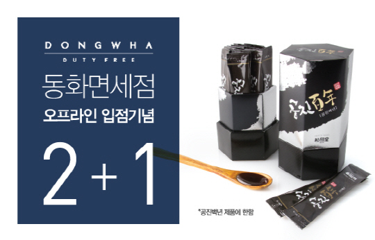 송강당은 오프라인 면세점 첫 입점을 기념하기 위해 특별 할인 이벤트를 실시하고 있다. 동화면세점 송강당점을 이용할 경우 일명 짜먹는 홍삼 스틱인 '공진백년' 2+1 혜택을 제공받을 수 있다.