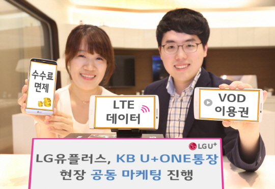 LG유플러스가 KB국민은행과 제휴를 통해 통신요금 납부 시 LTE데이터, IPTV VOD 이용권 및 수수료 면제 혜택을 제공하는 'KB U+ONE통장'을 출시한다고 5일 밝혔다. KB U+ONE통장은 개인 고객이라면 누구나 1인 1계좌에 한해 가입 가능하다.
