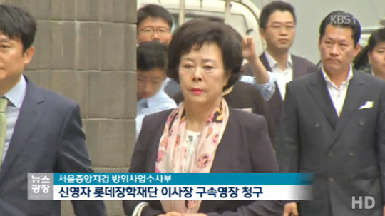 검찰이 롯데면세점 입점 로비 명목으로 거액의 뒷돈을 챙기고 회삿돈을 빼돌린 혐의로 롯데장학재단 신영자 이사장에 대해 구속영장을 청구했다.