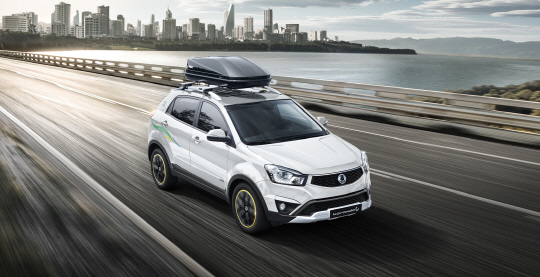 코란도 스포츠는 넛지바, 전면 스키드플레이트, LED 도어스커프, 스포츠알로이페달 등 스포티한 스타일을 위한 아이템을 대거 적용했다.