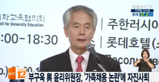 새누리당 부구욱(64,영산대 총장) 윤리위원장 내정자가 가족 채용 논란이 일자 위원장직을 자진 사퇴했다.