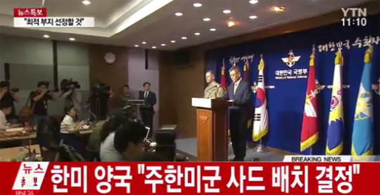 한미는 8일 오전 11시 "주한미군에 사드 체계를 배치하기로 한미동맹 차원에서 결정했다"고 발표했다.
