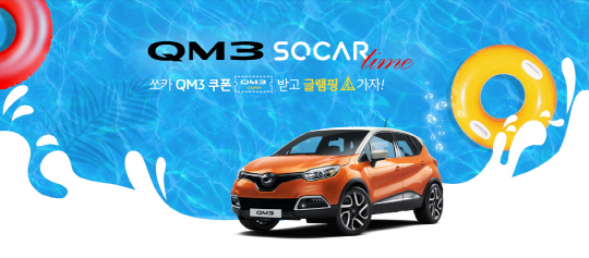 르노삼성자동차가 카셰어링 서비스 업체 쏘카와 함께 QM3 무료 드라이브 쿠폰과 럭셔리 글램핑 기회를 제공하는 'QM3 체험 이벤트'를 진행한다.