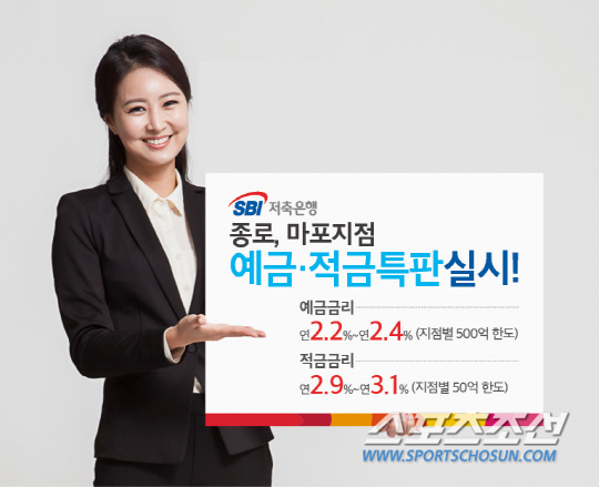 SBI저축은행 관계자는 "마포지점과 종로지점은 서울지역 중 유동인구가 많은 지역으로 인근에 상업시설, 대규모 주거단지, 업무시설 등이 위치해 지점 개설 후 지역 주민, 소상공인, 직장인 등 많은 고객들이 꾸준히 방문하고 있다"면서 "저금리 기조가 이어지는 상황에서 특판 상품 출시를 통해 기존 고객들에게 혜택을 제공하고 신규 고객 유치에도 도움이 될 것으로 예상된다"고 말했다.