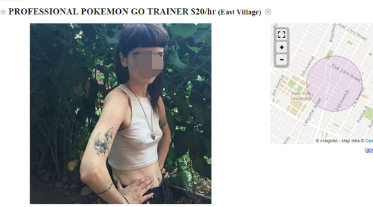 농담이 아니다. 포켓몬 GO 서비스가 시작된 미국과 호주 등에서는 '포켓몬 잡아드립니다'라는 광고가 등장했다. 현실에 바쁜 이들을 대신해 포켓몬을 잡아주는 사람들이다. '진짜' 포켓몬 트레이너답게 일반인보다 훨씬 많은 수의 포켓몬을 획득하는 능력이 있으며, 특별한 종 혹은 새롭게 진화된 포켓몬을 잡는 노하우까지 갖추고 있다.
