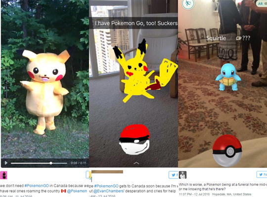 한국과 마찬가지로 캐나다 역시 포켓몬 불모지다. 포켓몬 GO를 실행시켜도 포켓몬이 나타나지 않는다. 아직 정식 서비스가 시작되지 않았기 때문이다. 항의와 불만이 폭주하는 가운데 캐나다의 포켓몬 팬들은 갈증을 식힐 자구책을 구하고 있다. 스스로 포켓몬 옷을 입고 대자연에서 뛰놀거나, 포켓몬 카드게임으로 아쉬움을 달래며 정식 서비스 오픈을 기다리고 있다.