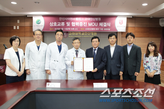 고려대 안산병원(원장 차상훈)과 안산사이언스밸리는 지난 14일 고려대 안산병원 13층 대회의실에서 업무협약을 체결하고 앞으로 안산사이언스밸리의 참여기관으로 활동하여 의료기기 및 바이오 관련 산·학·연 간 공동연구추진에 관해 상호 협력하기로 했다고 밝혔다.