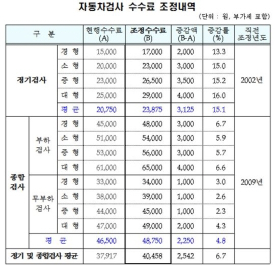 교통안전공단은 지난 2002년 이후 국민부담을 고려해 자동차검사 수수료를 동결했으나, 그 동안 큰 폭의 물가인상 등 원가상승 요인이 발생해 수수료를 올리게 됐다고 설명했다.