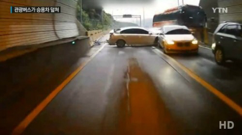 지난 17일 오후 5시 50분경 강원도 평창군 봉평면 영동고속도로 인천 방향 봉평터널에서 관광버스가 앞서가던 승용차를 들이받는 5중 추돌 사고가 발생했다.
