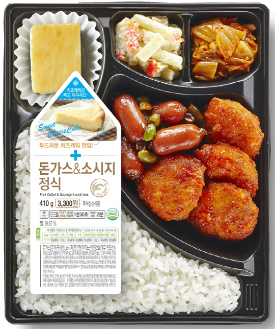 CU(씨유)가 업계 최초로 도시락과 디저트를 함께 구성한 '돈가스&소시지정식(410g, 3,300원)'을 오는 26일 출시한다.
