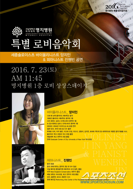 세계적인 명품 연주자로 손꼽히는 바이올리니스트 양지인과 피아니스트 진웬빈이 명지병원 환우들을 위한 특별연주를 펼친다.