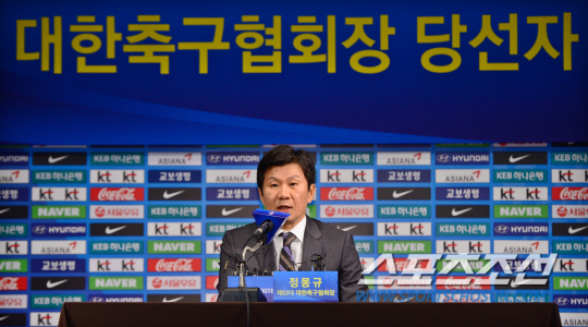 정 회장은 "후보등록 기간 중 단독출마하게 돼서 더 어깨가 무거웠다. 내 임기 동안 더욱 더 축구발전을 위해 힘써야 한다는 의미로 받아들였다. 과연 몇 분이 반대할까 생각했는데 깜짝 놀랐다. 이렇게 지지해주신 만큼 성과를 낼 수 있도록 열심히 하겠다"고 밝혔다.