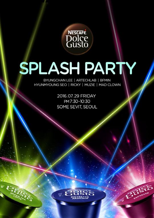 네스카페 돌체구스토 관계자는 "이번 '스플레쉬 파티 2016'은 창조적인 영감을 바탕으로 커피 브랜드의 한계를 뛰어 넘어 모던한 브랜드로 소비자들과 접점을 강화하기 위해 기획된 파티"라며, "소비자들이 커피, 아트, 음악, 빛이 어우러진 잊지 못할 금요일 밤을 만끽해 볼 수 있길 바란다"고 전했다. 스플레쉬 파티는 29일 금요일 오후 7시반 서울 반포 한강 세빛섬에서 펼쳐진다.