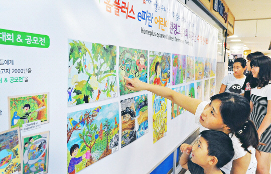 홈플러스의 사회공헌재단인 홈플러스 e파란재단이 24일 유엔환경계획(UNEP) 한국위원회와 함께 진행한 '2016 e파란 어린이 환경그림공모전' 수상작을 8월 말까지 전국 141개 점포에 전시한다고 밝혔다. 전시는 가족 단위 방문이 많은 대형마트의 특성을 살려 고객들에게 환경의 소중함을 환기시키자는 취지로 마련, 올해 'e파란 어린이 환경그림공모전' 입선 이상 수상작 총 2500점을 각 점포에 전시하게 된다. e파란 어린이 환경그림공모전은 홈플러스가 지난 2000년부터 매년 전개해온 국내 최대 규모 어린이 환경 프로그램이다. 올해는 처음으로 매장 내 문화센터, 야외광장 등에서 사생대회 형태로도 진행됐다.