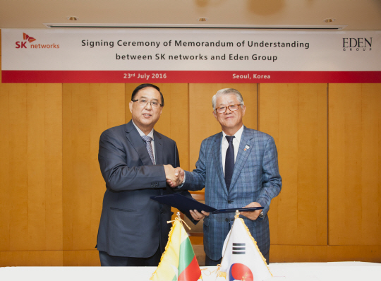 SK네트웍스는 지난 23일, 서울 광진구 워커힐 호텔에서 미얀마 에덴그룹(Eden Group)과 전략적 업무제휴 및 상호 협력을 추진하는 양해각서를 체결했다고 밝혔다.