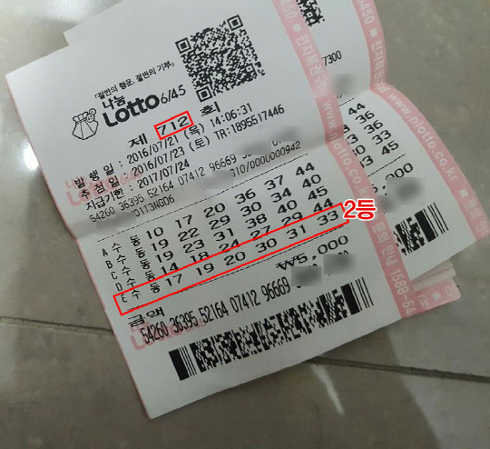 한편, 로또 712회차 당첨번호는 '17, 20, 30, 31, 33, 45'번이다. 2등 보너스 번호는 '19'다.