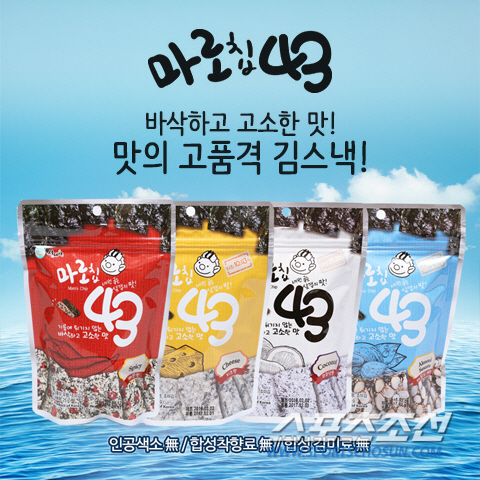 여름밤 시원한 맥주 한잔에 곁들일 명품 안주 김스낵! 스포츠조선 든든몰(www.dndnmall.co.kr)이 명품 김스낵 '마로칩' 4종 세트를 집으로 무료 배송해 준다. 100% 국산 서천김을 네 번 구운 삼겹의 맛이 일품이며, 기름에 튀기지 않아 감칠맛이 고소하다. 온가족 간식으로도 그만이다. 미국 농무부의 USDA 유기농 인증을 받아 전 세계로 수출되고 있다. 매운맛, 치즈맛, 코코넛맛, 아몬드·깨맛 4종 세트 전부를 온라인 최저가인 11,000원에 판매하며, 배송비 추가 없이 보내 준다. 문의 1688-2528