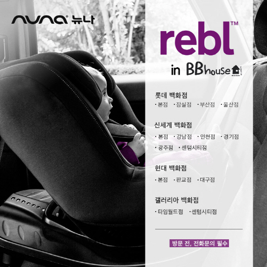 네덜란드 프리미엄 유아용품브랜드 뉴나(NUNA)가 28일 레블(Rebl) 카시트를 전국 유명 백화점 유아동샵 비비하우스(BBhouse)에 15곳에 공식 런칭했다고 밝혔다. 레블 카시트는 유럽의 최신 안전기준인 'i-size(ECE R129)'를 통과했을 뿐만 아니라, '360도 시트 회전 시스템'과 '인체공학적인 디자인'을 갖추고 있는 게 특징이다. 뉴나는 연말까지 53개 백화점 BB하우스 전점에 오픈을 목표로, 판촉 및 홍보 활동을 전개해 나갈 예정이다.