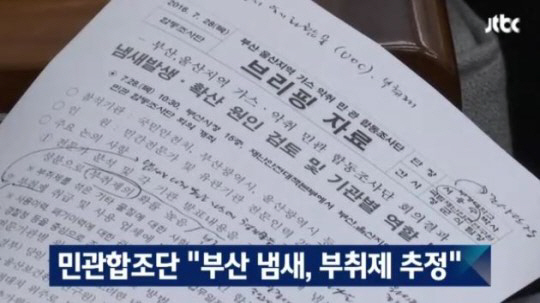 부산울산 악취·가스냄새 민관합동조사단의 서용수 조사단장은 지난 28일 기자회견에서 "가스냄새의 원인은 '부취제' 유출일 가능성이 높다"고 말했다.