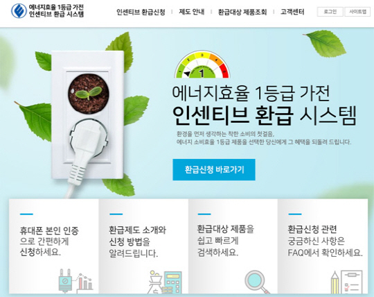 '에너지효율 1등급 가전 인센티브 환급시스템' 사이트가 29일 오전 10시 오픈됐다.