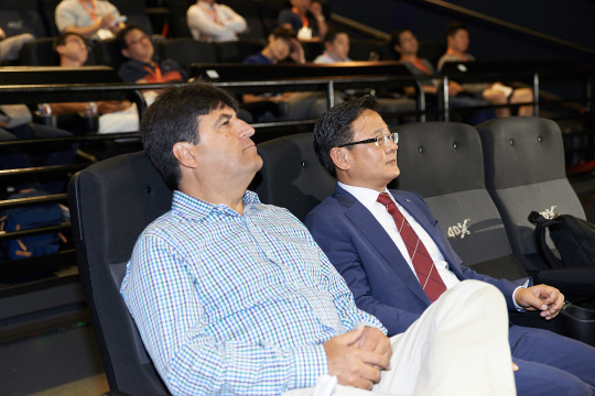 2년 누적된 데이터를 보면 상영관의 객석점유율이 해를 거듭할수록 증가하는 추세다. 한국은 4DX가 7년차에 접어들었는데 2015년에 전세계에서 1300만명이 4DX를 관람했고, 이 중 약 250만명 정도가 한국에서 관람했다. 한국 관람객 중 대략 30%는 재관람으로 판단하고 있다. LA LIVE의 이곳 Regal Cinemas 4DX 상영관도 2014년에는 41%, 2015년에는 43%, 올해 상반기까지 49%를 기록했다. 지속해서 상승하고 있다는 것이고, 특히 이 지역 주변분들이 관람하는 극장이기 때문에 4DX의 재관람율이 높은 편이라고 분석하고 있다.