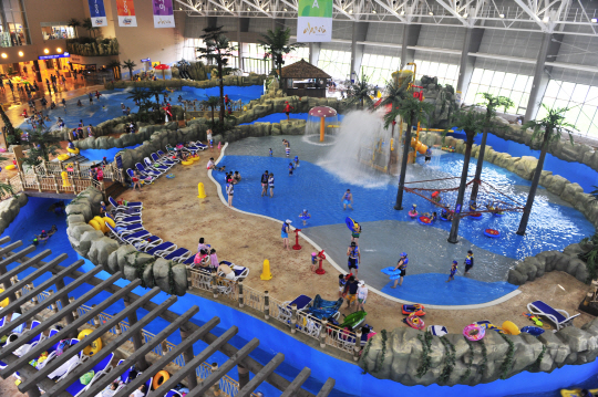 키즈풀과 온 가족이 함께할 수 있는 대형 아쿠아플레이풀, 파도풀, 야외풀, 지름 18m의 토네이도, 최대 속도 30km의 보디슬라이드 등 스릴과 재미 넘치는 어트랙션이 가득하다. 또한 여독을 풀 수 있는 아쿠아풀과 야외 노천탕이 있어 온가족이 즐기기에 적당하다.