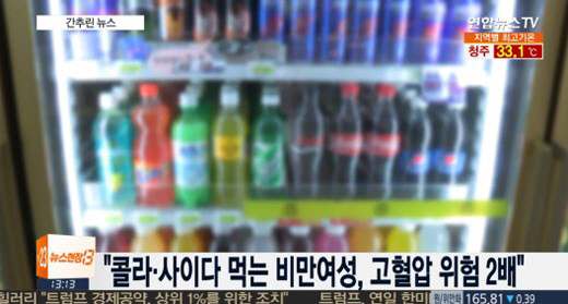 콜라, 사이다 등의 당과 탄산이 들어있는 음료를 비만 여성이 마시면 고혈압 위험이 2배까지 높아지는 것으로 알려졌다.