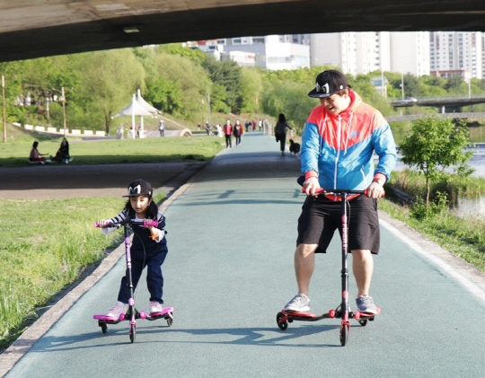 ▲ 신개념 양 발 킥보드 타고 동네한바퀴, 즐거운 '홈캉스' 보내세요~!