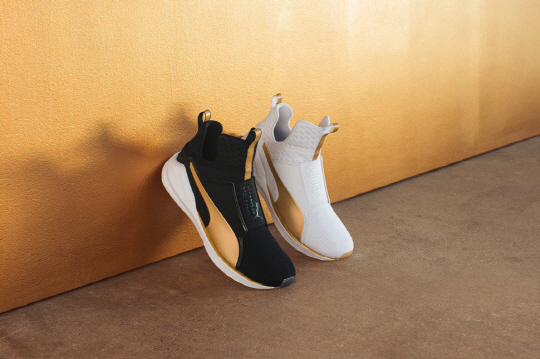 이번 컬렉션에서 눈에 띄는 제품은 할리우드 대표 패셔니스타인 카일리 제너(Kylie Jenner)가 홍보대사로 활동하는 푸마의 차세대 여성용 트레이닝화 '피어스(Fierce)'다. 메쉬 소재와 발목까지 올라오는 독특한 부츠 스타일로 지난 4월 출시이래 운동을 즐기는 트렌디한 여성들 사이에서 인기를 끌었던 '피어스(Fierce)'는 골드 색상의 폼스트립(Formstrip)과 설포로 더욱 유니크 하게 변해 고급스러운 '애슬레저 룩' 연출이 가능하다.