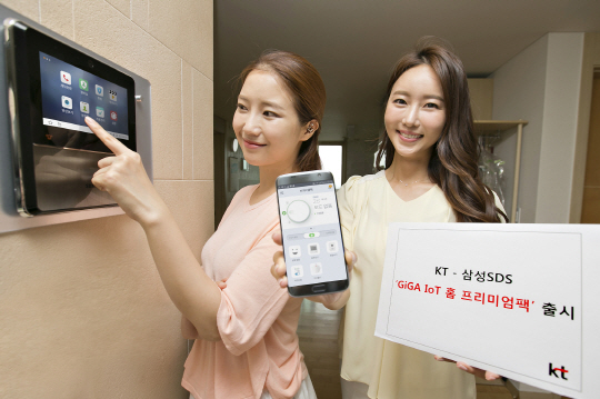 KT가 삼성SDS와 함께 APT 단지, 다세대/빌라/ 오피스텔 등 공동주택에 맞는 홈IoT 토탈 케어 서비스 'GiGA IoT 홈 프리미엄팩'을 출시한다.