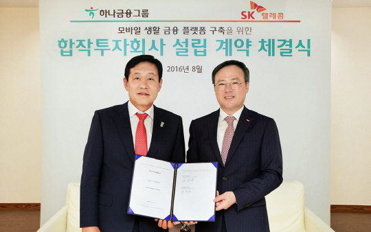 SK텔레콤이 하나금융지주와 지난 17일 합작투자 계약을 체결하고 모바일 기반의 생활금융 플랫폼 사업을 추진한다고 18일 밝혔다.