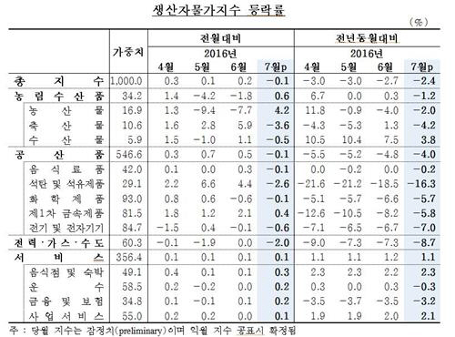 품목별로는 공산품 중 석탄 및 석유제품이 2.6% 하락했고 농림수산물 중에선 축산물이 3.6% 떨어져 낙폭이 컸다.