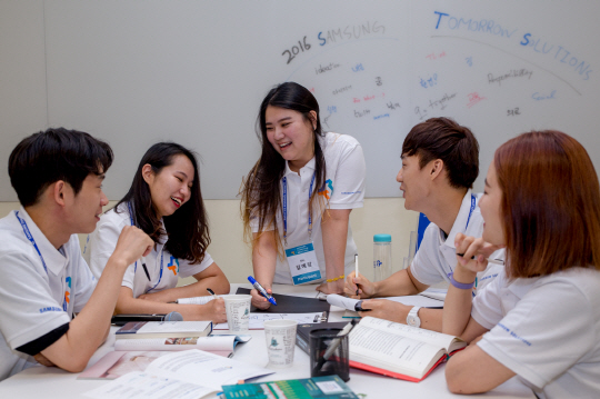 삼성전자가 21일 '삼성 투모로우 솔루션 (Samsung Tomorrow Solutions)' 결선 진출 20팀과 임직원이 함께 한 멘토링 워크샵을 진행했다고 밝혔다. 삼성 투모로우 솔루션 공모전은 삼성전자가 주최하고 미래창조과학부가 후원, 사회의 현안과 불편함을 찾고 이를 해결하기 위한 창의적인 아이디어를 발굴해 직접 사회에 적용하는 사회공헌 공모전이다.