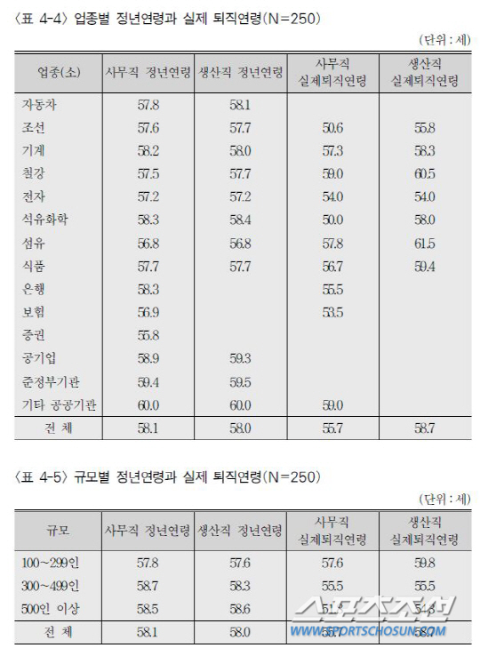 이어 "생산직보다 사무직의 노조 가입률이 낮은 점도 퇴직 연령 차이에 영향을 미친 것으로 보인다"고 덧붙였다.