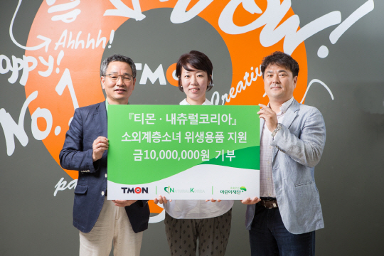 소셜커머스 티몬(www.tmon.co.kr)이 내츄럴코리아와 함께 초록우산 어린이재단의 소외계층소녀 생리대 지원사업 '핑크박스 캠페인'에 기부금 500만원과 물품 500만원 등 총 1000만원을 기부한다고 25일 밝혔다.