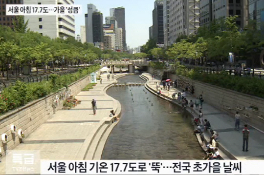 오늘(27일) 서울의 아침 기온이 17.7도로 뚝 떨어지며 초가을 날씨를 보였다.