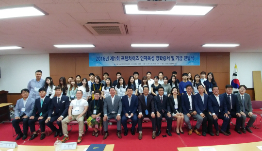 한국프랜차이즈산업협회가 지난 27일 '제1회 FC인재·육성 장학위원회 장학기금 전달식'을 진행했다고 29일 밝혔다.
