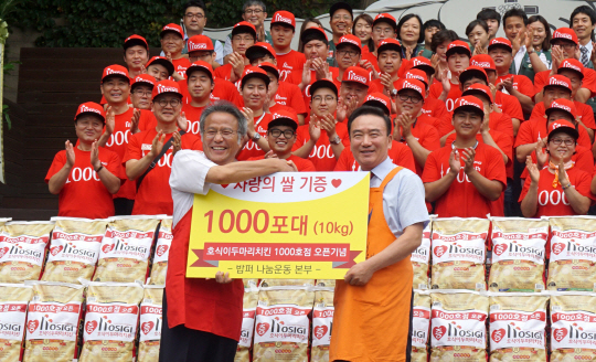 호식이두마리치킨은 이번 1000호점 오픈을 기념해 1부 사랑나눔봉사와 2부 1000호점(호식이두마리치킨 남산 서울타워점) 오픈식으로 나누어 행사를 진행했다.