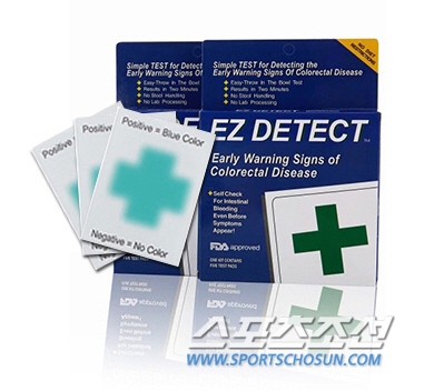 번거로운 대장내시경 없이 집에서 대장암을 찾아내는 검사시트 '이지 디텍트'를 스포츠조선 든든몰(www.dndnmall.co.kr)이 도입했다. 대변을 본 뒤 변기에 검사지를 넣으면 잠혈이 섞여 있는 경우 청록색 십자가 모양이 나타난다. 95% 정확도로 대장암을 찾아주므로 십자가가 나타나면 병원에서 확진받으면 된다. 세계 최고 병원인 미국 존스홉킨스대학병원의 임상시험을 거쳐 미국 FDA 승인을 받았다. 제조국은 미국이다. 검사지 3장 1세트는 13,500원이며, 1만원만 추가하면 부부가 함께 검사하도록 2세트를 보내 준다. 문의 1688-2528