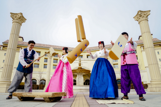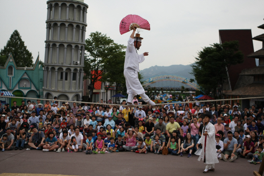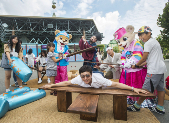 추석을 맞아 14~18일 '한가위 민속 한마당' 행사를 펼친다. 연휴 기간 매일 오후 1~5시 카니발 광장에서는 '전통놀이 체험마당'을 선보인다. 제기차기, 투호 등 고유의 민속놀이는 물론, 곤장, 주리, 말뚝이 떡먹이기(콩주머니 던지기) 등 새로운 민속놀이도 펼친다. 아울러 흥부와 놀부, 심봉사와 뺑덕어멈, 홍길동 등 우리 전래동화에 나오는 인기 캐릭터들을 등장시켜 내방객과 함께 대결을 펼치거나 포토타임도 갖는다.