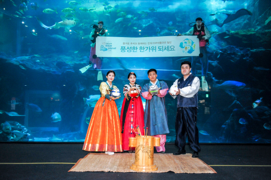 아쿠아플라넷 여수는 14~18일 오션라이프 메인 수조에서는 스토리텔러가 진행하는 '한가위 퀴즈 이벤트'를 실시한다. 메인 수조에서는 다이버들이 한복을 입고 수중 피딩도 선보이고, 포토타임도 진행한다.