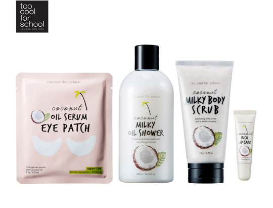 투쿨포스쿨은 올해 상반기 출시 이후 꾸준한 인기를 얻고 있는 '코코넛 밀키 미스트'와 '코코넛 세라마이드 마스크' 등 페이스 제품에 이어 바디, 애플존, 립 등 건조해지기 쉬운 피부의 데일리 케어를 위한 라인을 확장했다. 새롭게 선보이는 제품은 '코코넛 밀키 오일 샤워', '코코넛 밀키 바디 스크럽', '코코넛 오일 세럼 아이패치', '코코넛 리치 립 케어' 4 종으로, 코코넛 천연 유래 성분이 함유됐다.