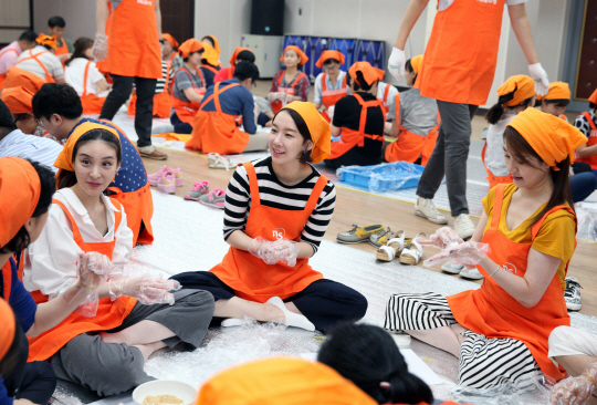 NS 홈쇼핑 임직원들이 지난 7일 경기도 성남시 수정구에 위치한 수정노인종합복지관에서 '사랑빚기 행복나눔' 송편 빚기 행사를 진행했다.