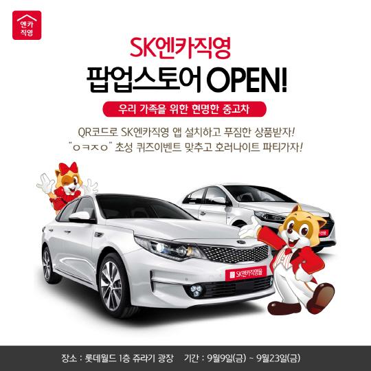 브랜드명을 활용한 이색적인 온라인 이벤트도 진행한다. 팝업스토어 주변에 배치된 초성을 보고 SK엔카직영 공식 페이스북(www.facebook.com/sk.encardirect) 이벤트 게시글에 정답을 댓글로 남기면 참여 가능하다. 추첨을 통해 200명에게 30일 롯데월드에서 개최되는 호러나이트파티 티켓을 증정한다. 당첨자는 오는 26일 발표된다.