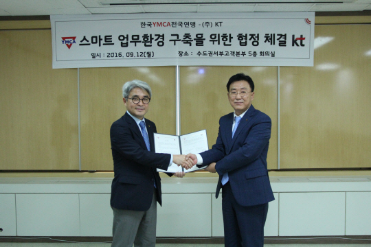 KT가 12일 한국YMCA전국연맹과 정보통신기술(ICT) 기반의 다양한 솔루션을 제공하는 업무협약(MOU)를 체결했다.